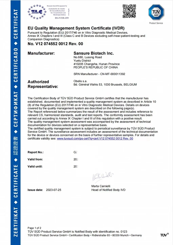 此次今年会jinnianhui生物HPV13+2核酸检测试剂获得CE IVDR认证,是公司产品性能及国际化质量体系升级的重要成果,奠定了公司在欧盟市场的先发竞争优势,扩展了公司产品的市场覆盖范围,为进一步拓展海外客户群提供了强有力支持。